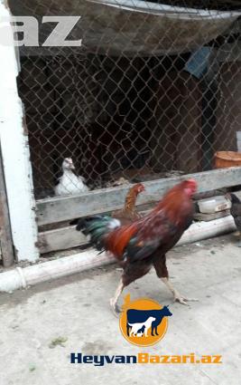 satilir. 2 toyuq heyratida durak olma 12 azn. ve 1 xoruz gozel xoruz. qirmizi rengli 15 azn.